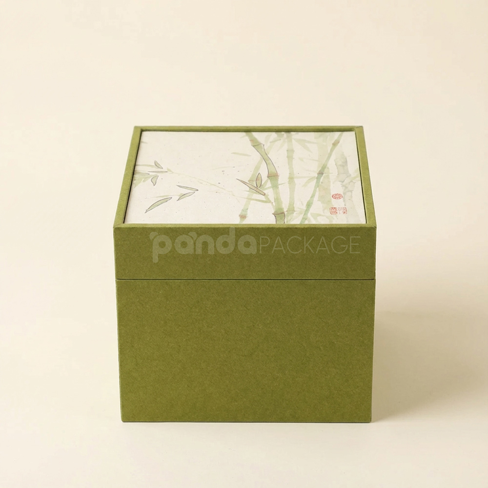 Oriental-Inspired Tea Cup Gift Box with Artistic Lid and Padded Insert
