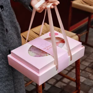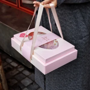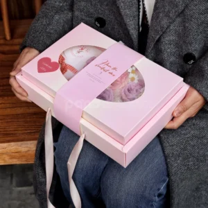 Pink Floral Mooncake Gift Box with Ribbon Handle