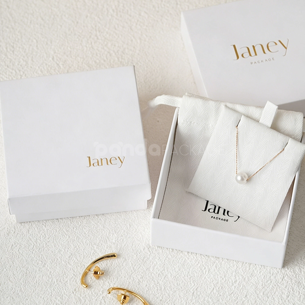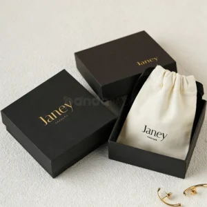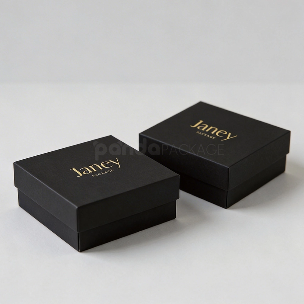 Premium Black Jewelry Rigid Box with Gold Foil Logo