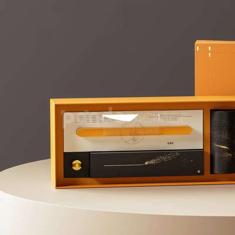 Premium Drawer Gift Box with Magnetic Closure in Amber Yellow