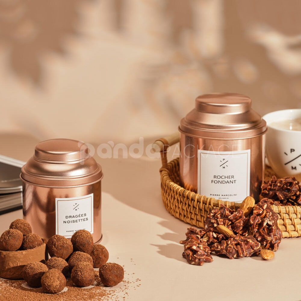 Premium Metallic Tin Chocolate Packaging for Gourmet Truffle Storage