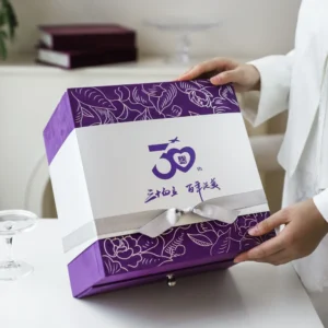 Purple & White Illustrated Drawer Gift Box with Magnetic Lid