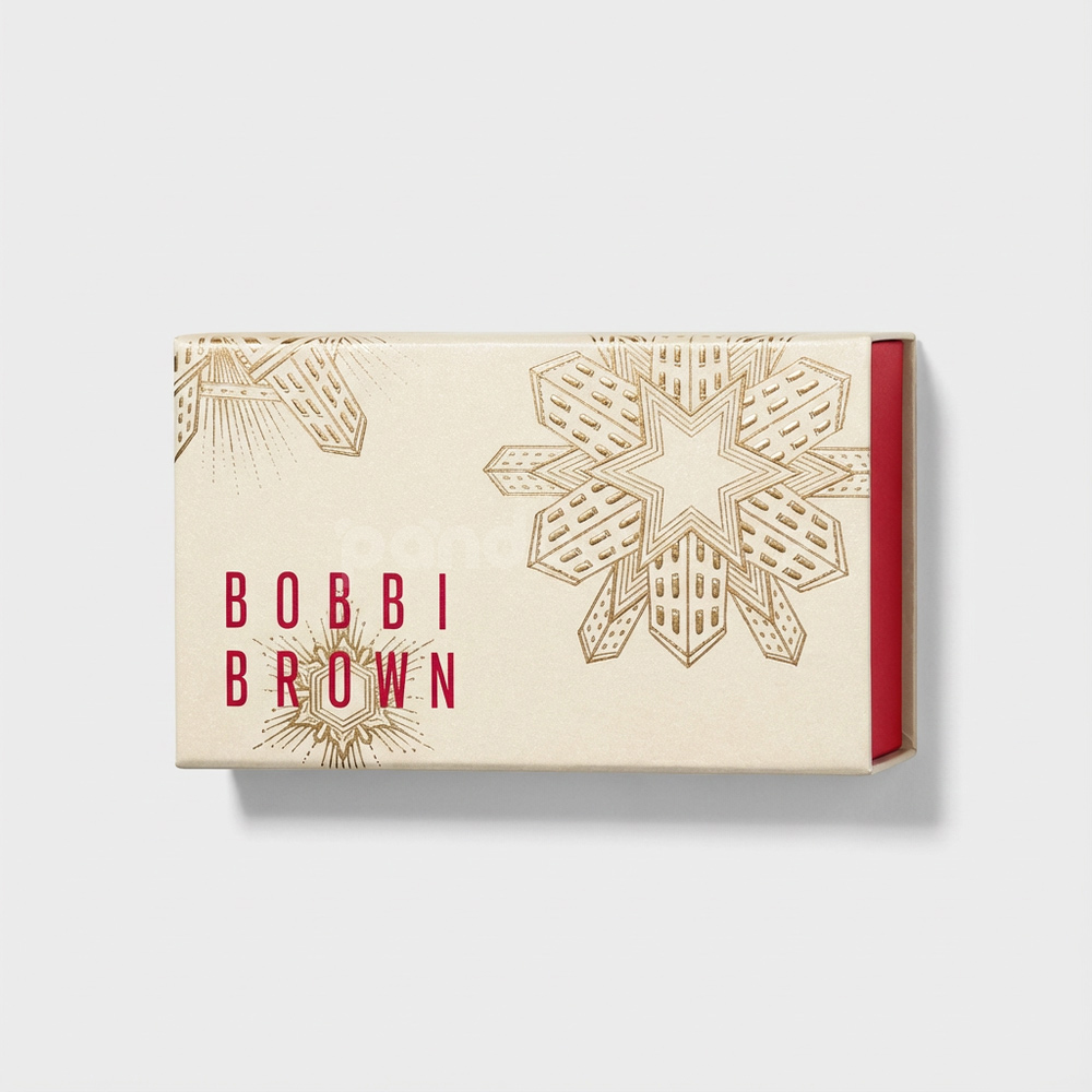 Luxury paperboard drawer box with gold foil star embossing, perfect for cosmetics, gift packaging, or holiday retail collections. Features a premium red drawer for a festive unboxing experience.