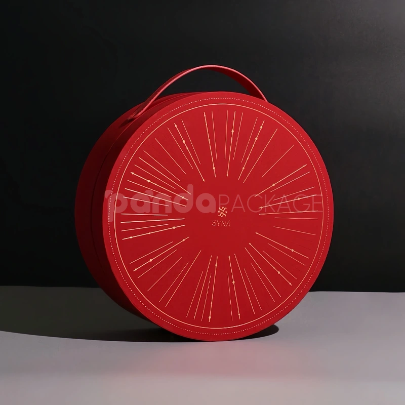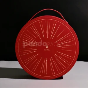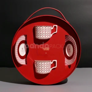 Red Round Gift Box with Handle – Tea & Ceramic Set Packaging