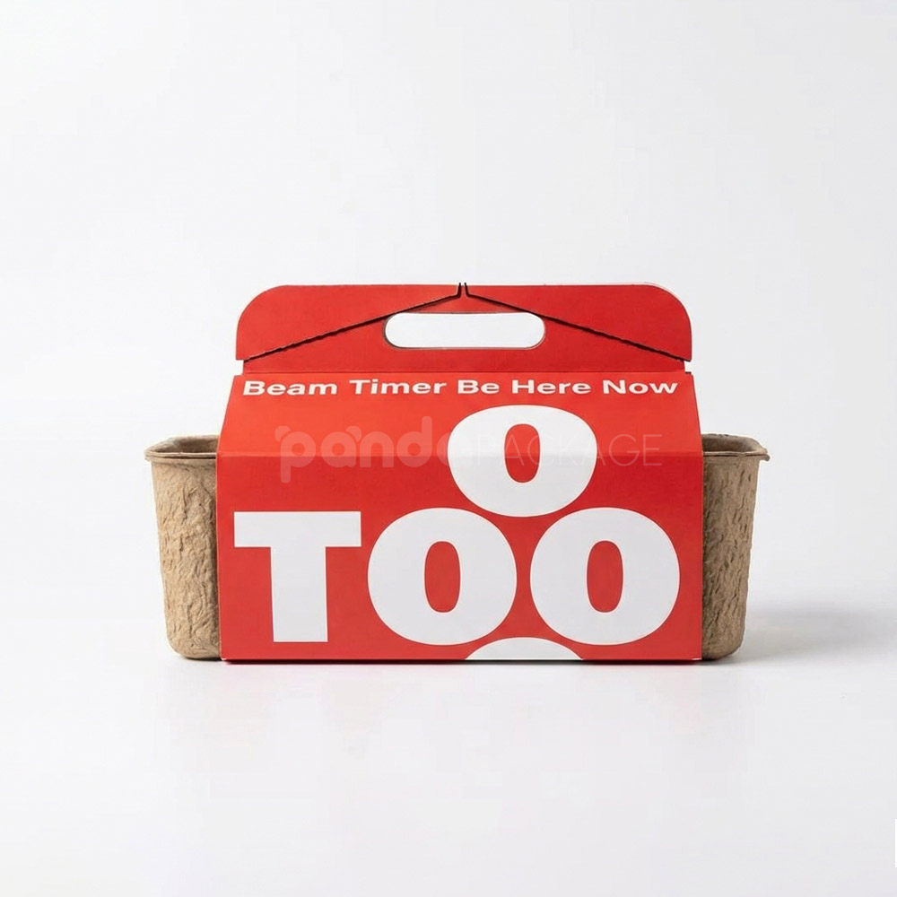 Stylish and eco-friendly red beverage tray for takeout convenience.