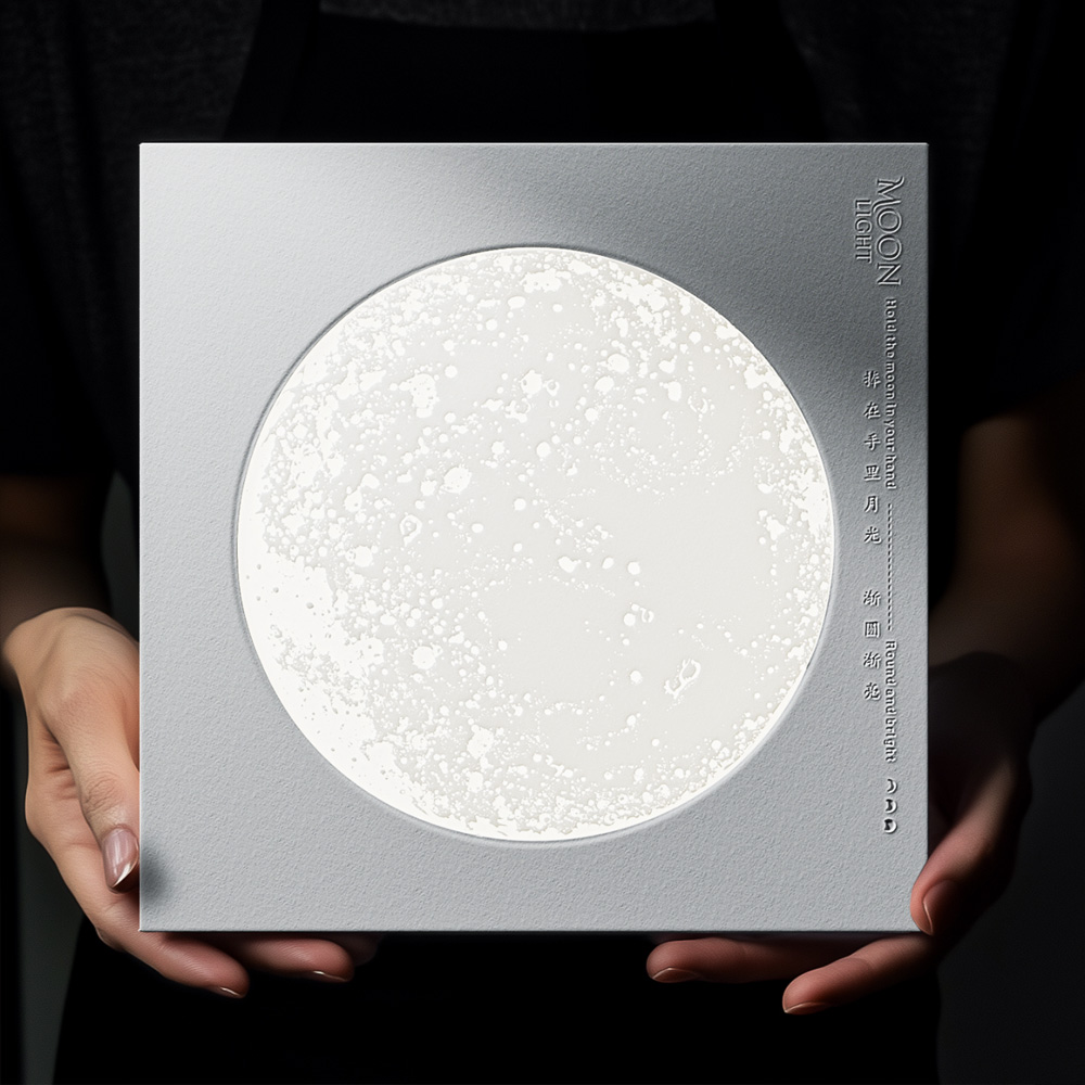 Silver Moon-Themed Gift Box with Embossed Lid Design
