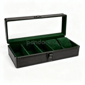 Sleek Black 5-Slot Watch Storage Box with Clear View Lid