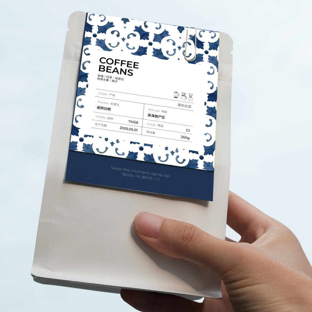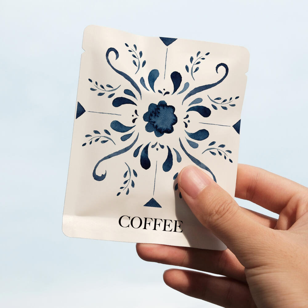 Specialty Coffee Box with Elegant Blue Floral Pattern