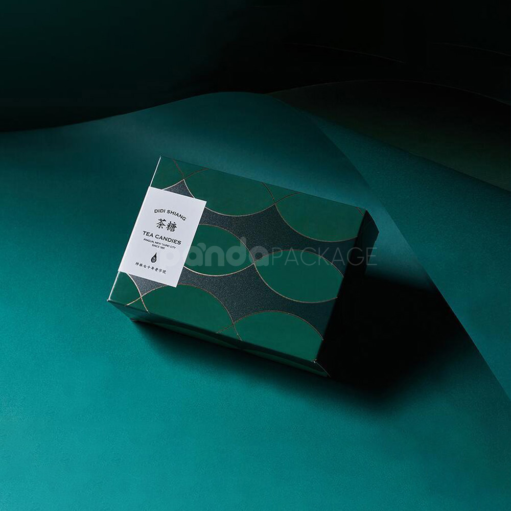 Stylish Green Nougat Candy Gift Box with Modern Pattern Design