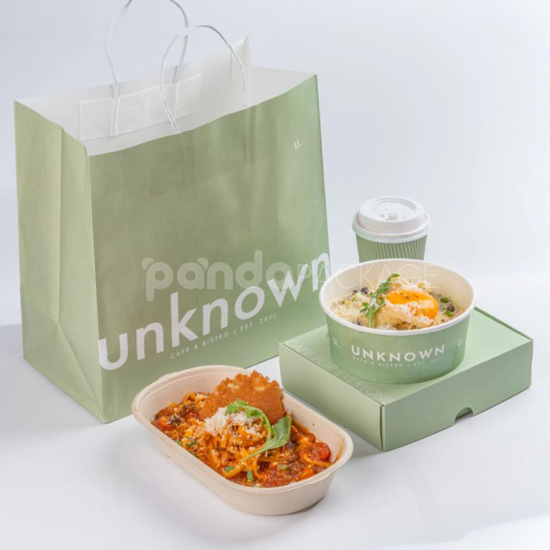 Stylish Restaurant Paper Bags for Takeout Meals and Drinks