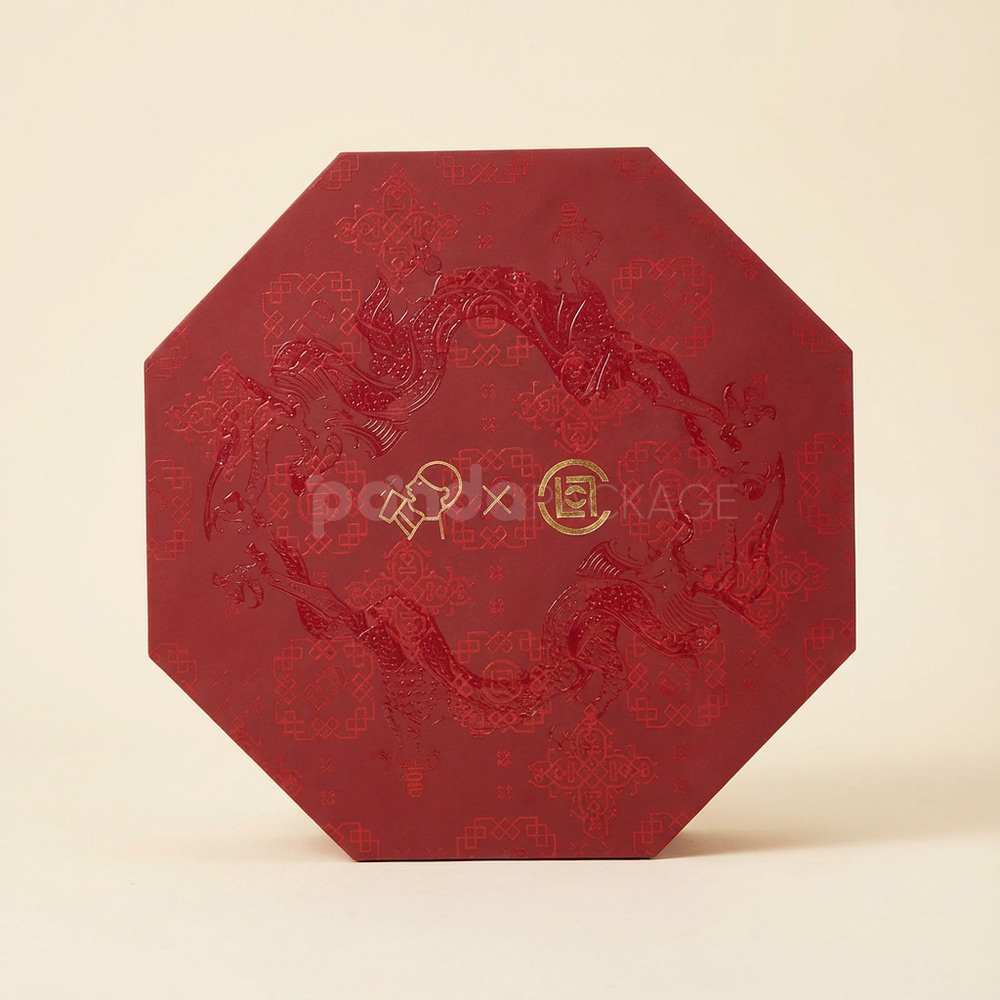 Traditional Red Octagonal Gift Box with Gold Foil Accents