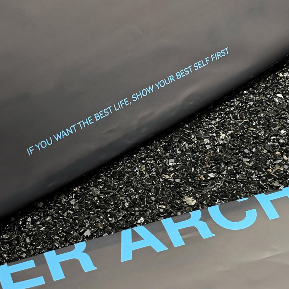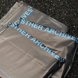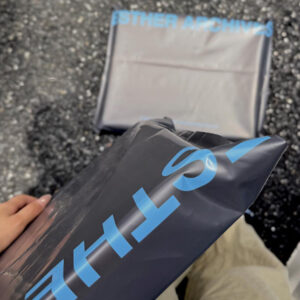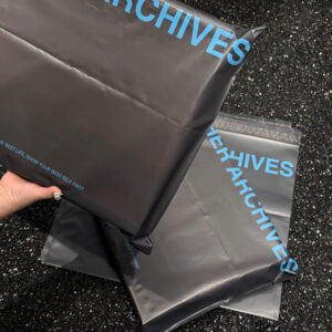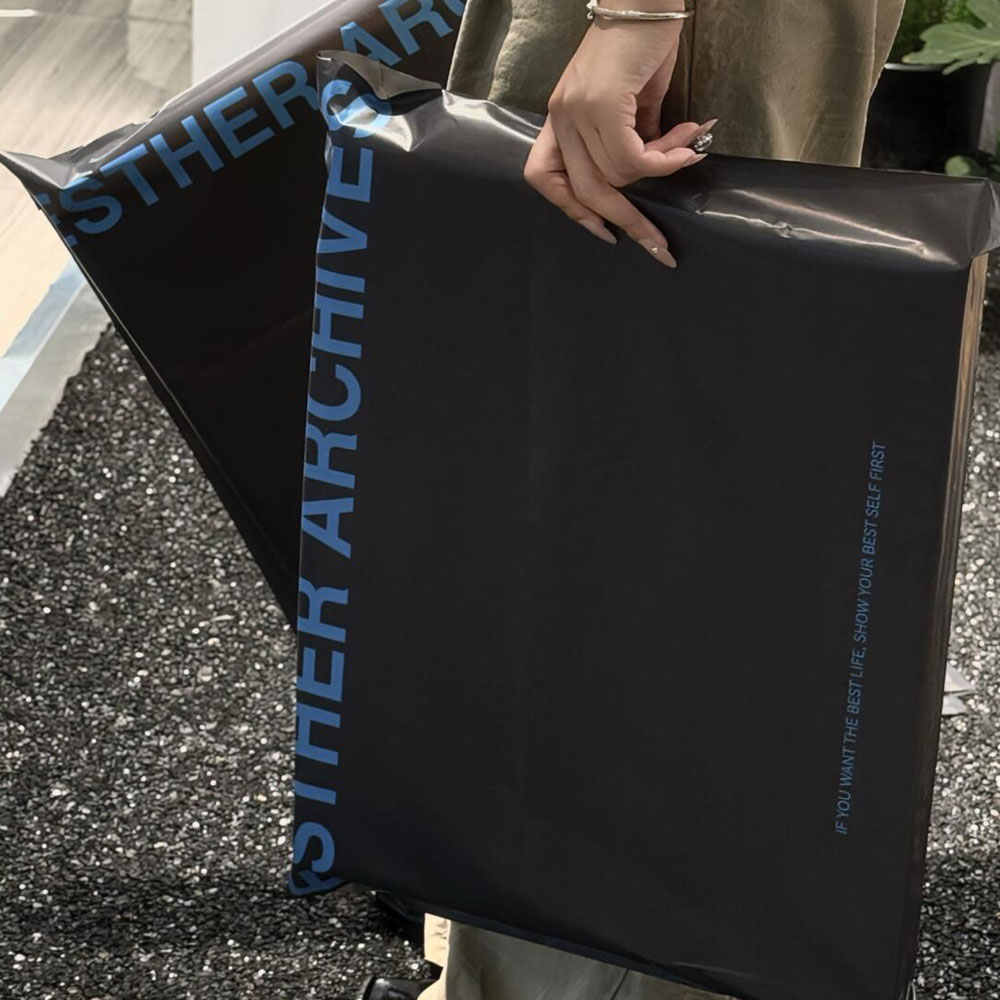 Trendy Black Apparel Mailing Bag with Blue Lettering