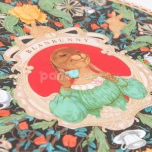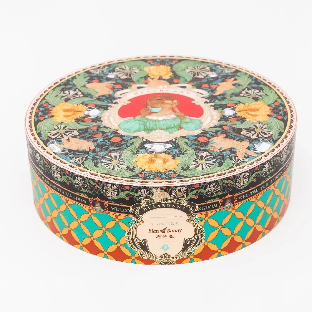 Two-Piece Lid Round Paper Tin with Floral Black & Teal Design