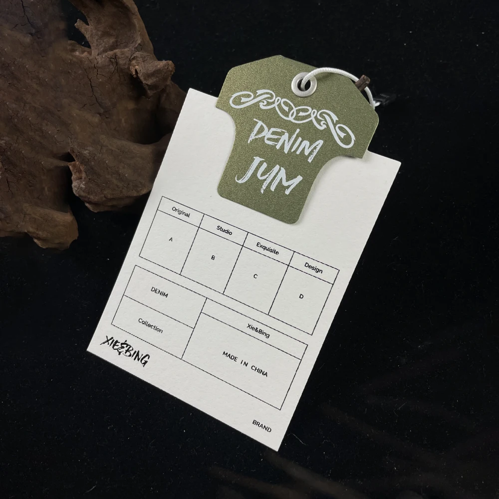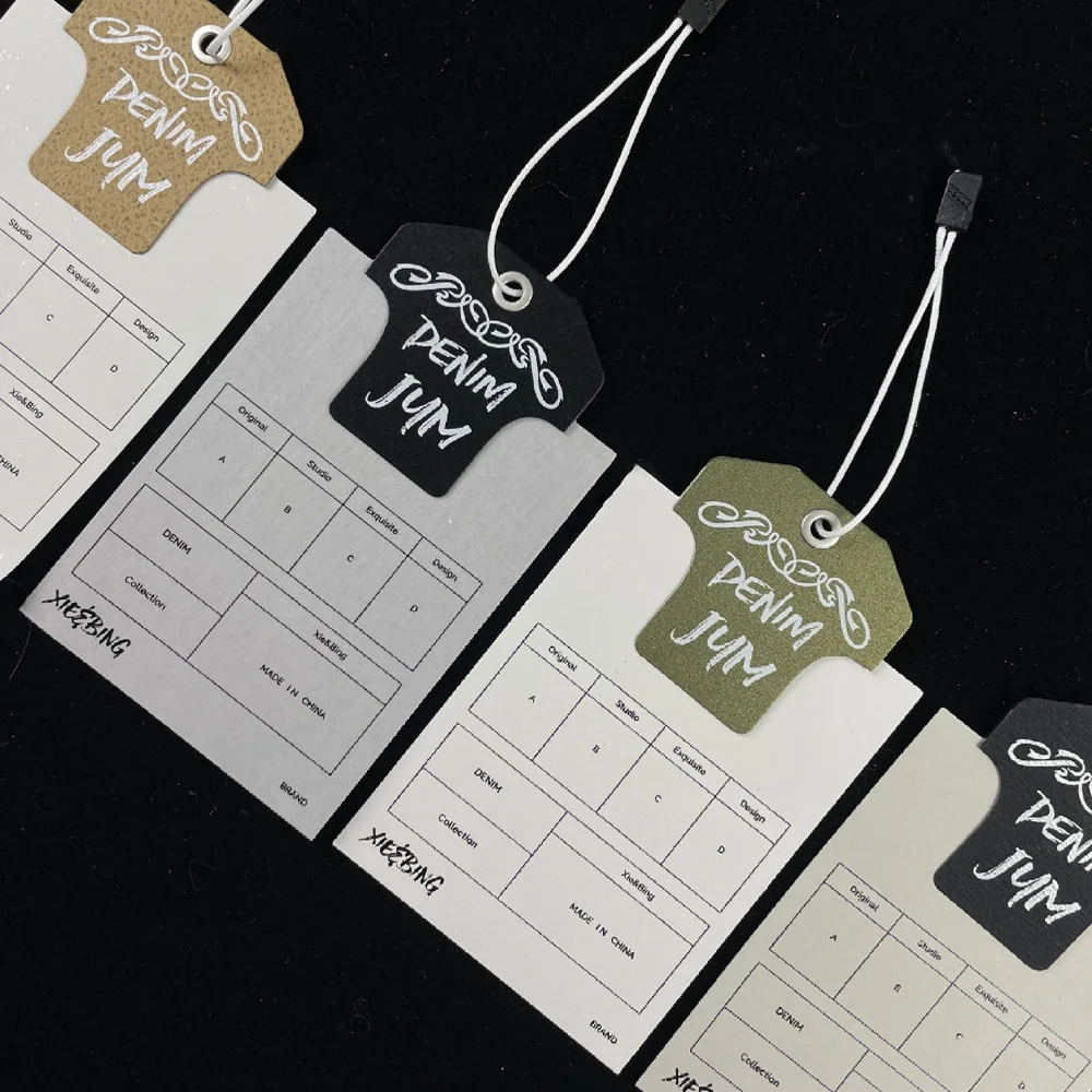 Two-Tone Paper Hang Tags with Folded Top and Product Info Table