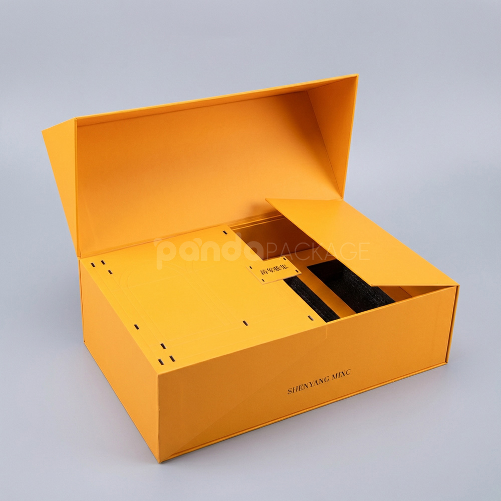 Vibrant Orange Magnetic Gift Box with Tech-Inspired Interior Design