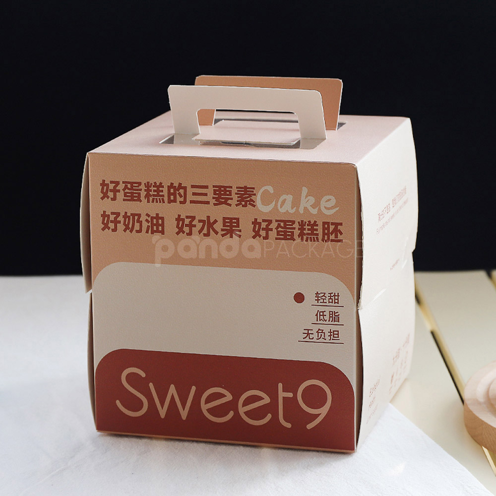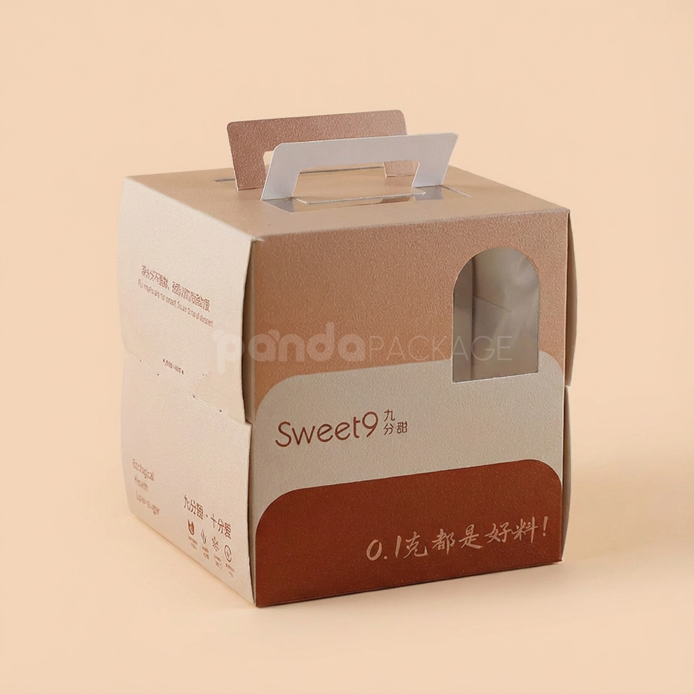 Warm-Tone Cake Box with Handle – Sweet Bakery Packaging