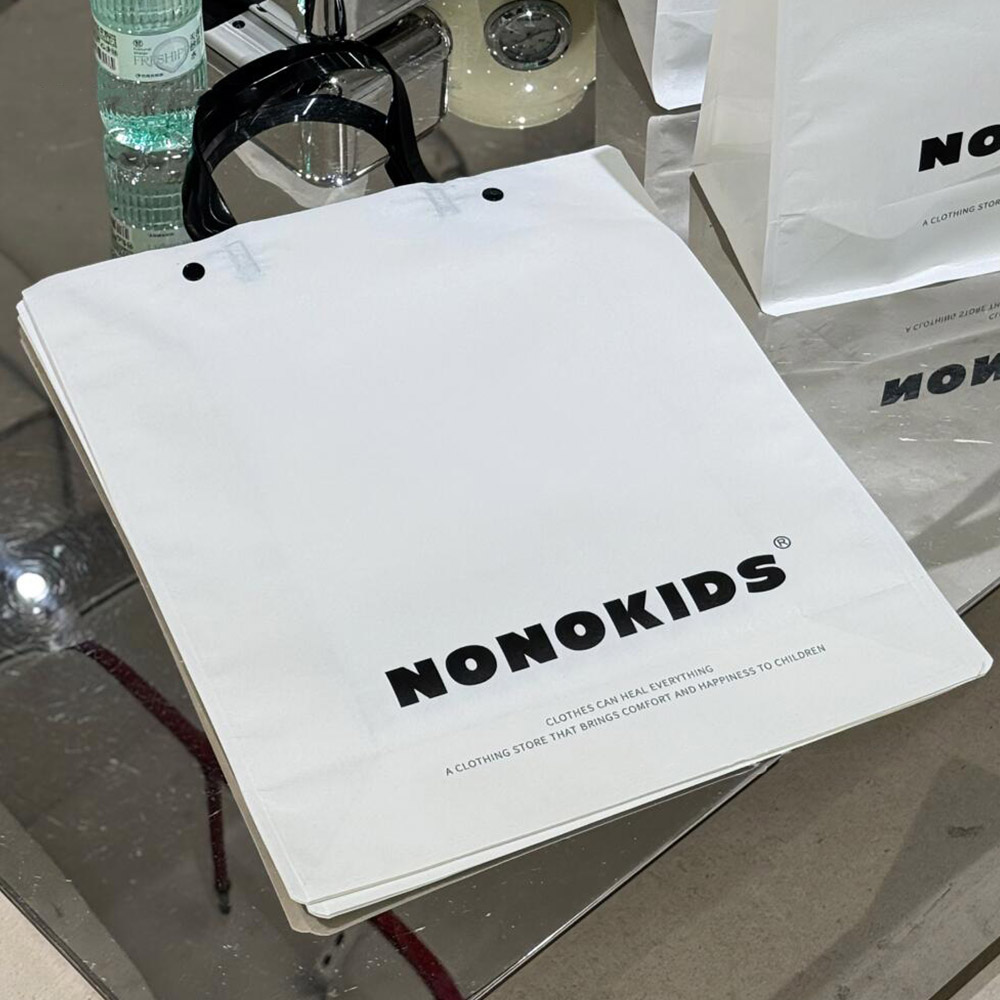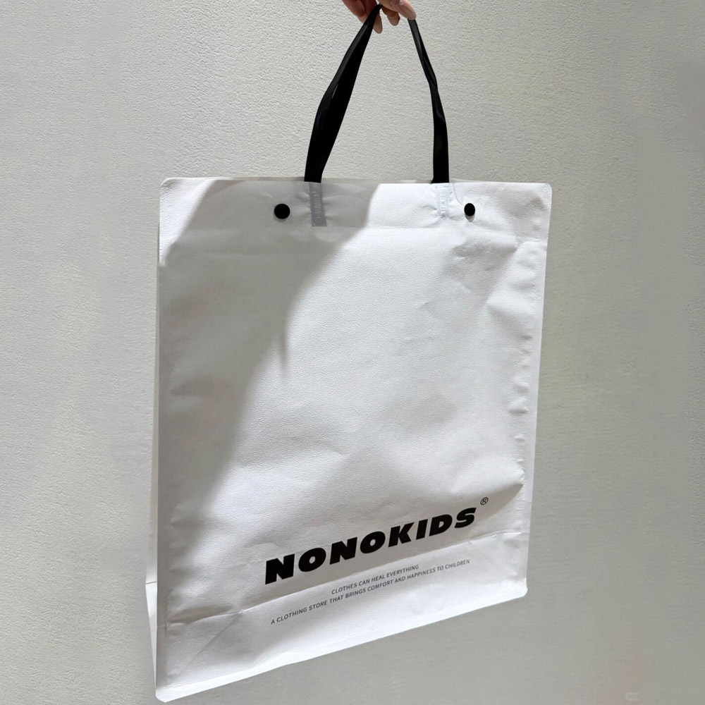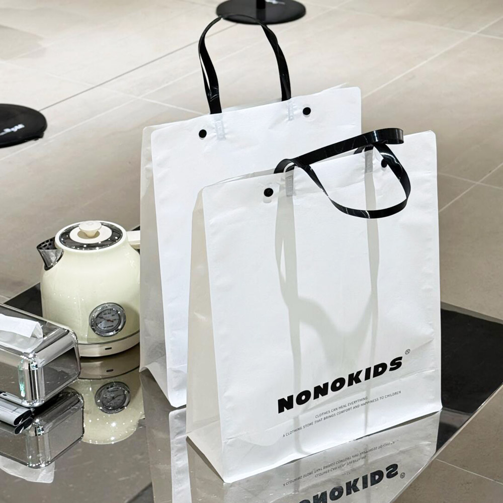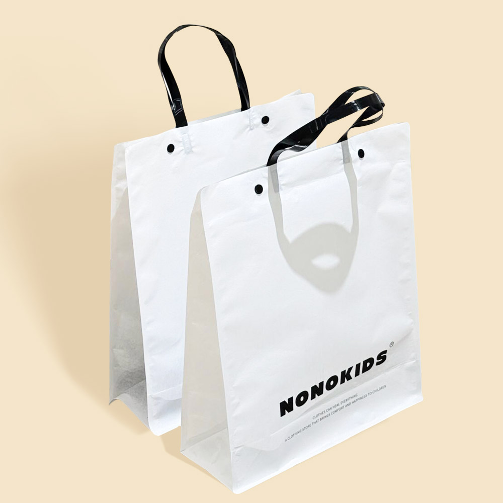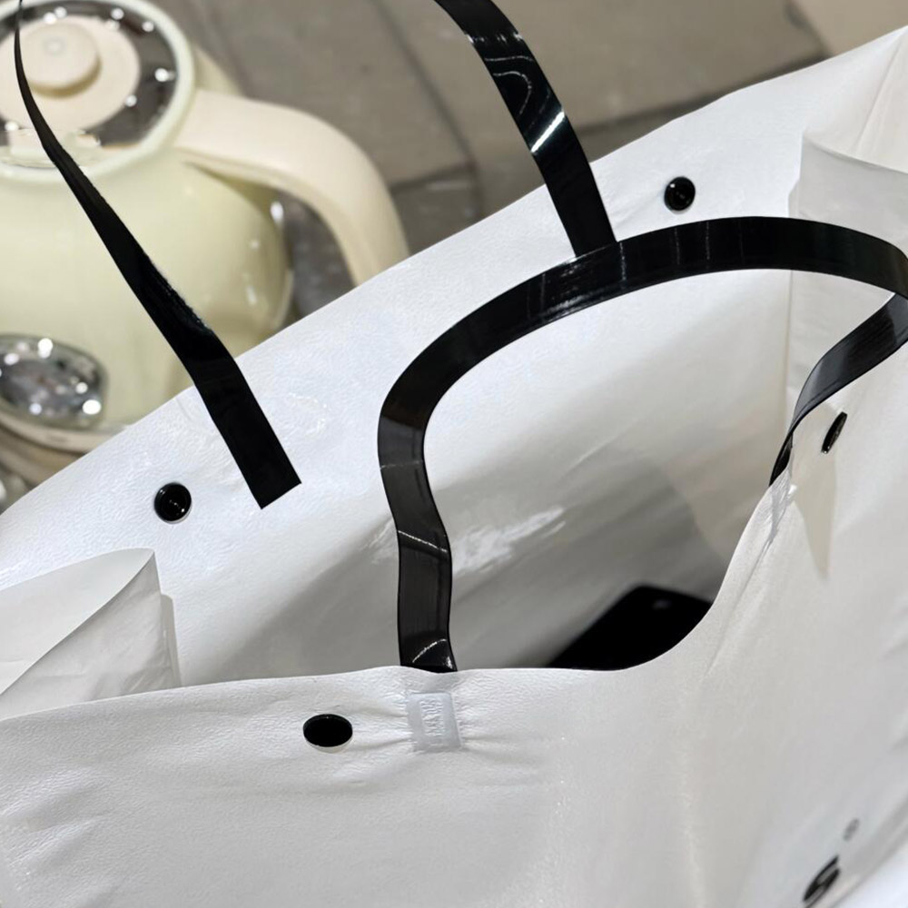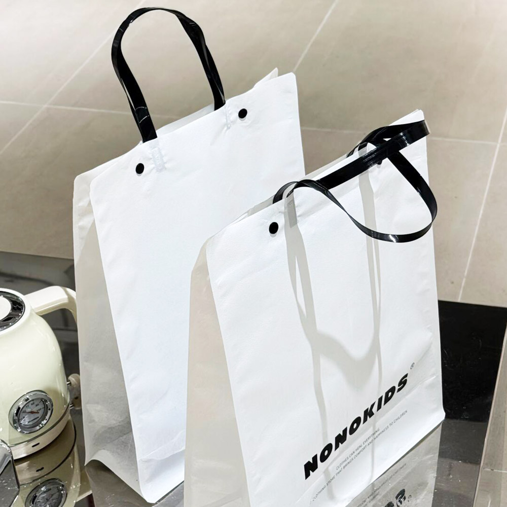 White Apparel Shopping Bag with Black Handles and Logo