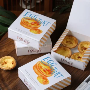 White Egg Tart Packaging Box with Cartoon Illustration