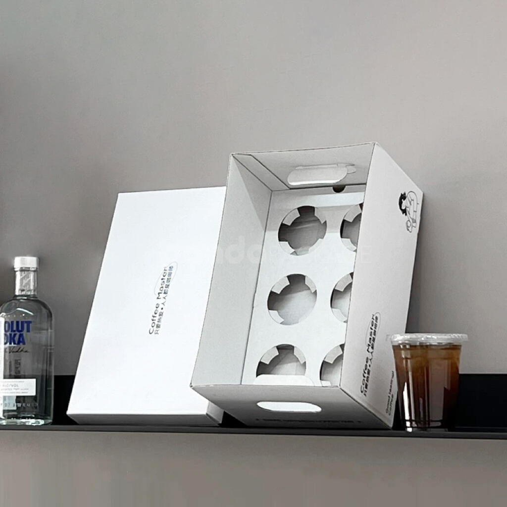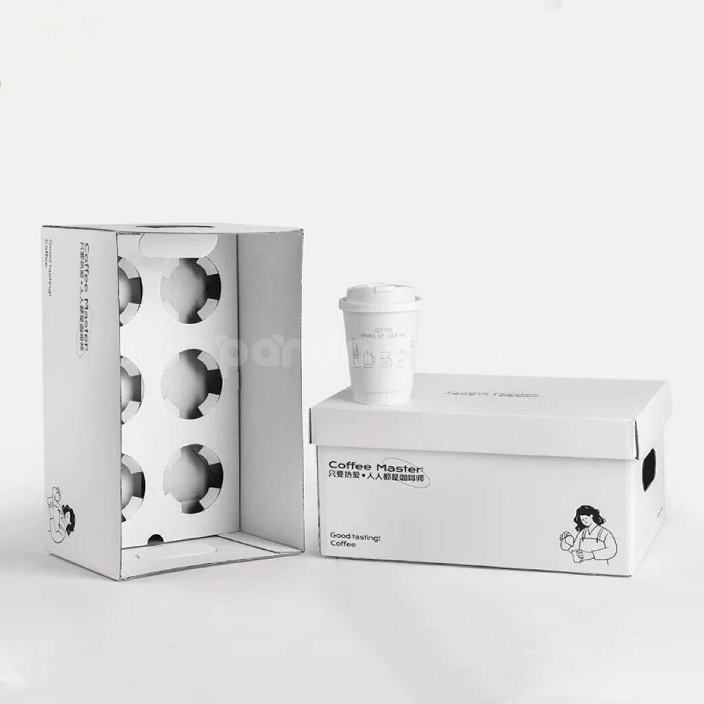White Kraft Beverage Tray Box with Die-Cut Holes for Coffee Cups