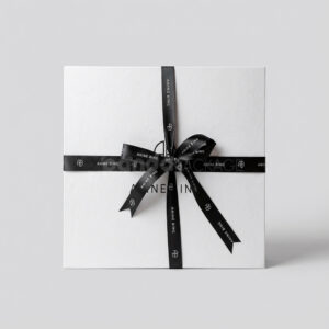 White Luxury Clothing Gift Box with Custom Black Ribbon Bow